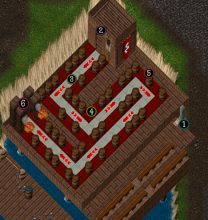 - 5 - Barrels : These barrels block defender placement, but can be removed for 50gp each. Remove by double-clicking.