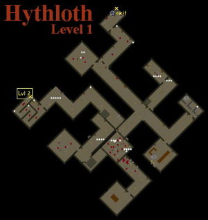 Hythloth is one of the 7 Anti-Virtue Dungeons. Its values are the opposite of the Spirituality and Humility virtues. The dungeon is located on Fire Island. There are four levels. Hythloth is largely an Abyss dungeon, where Demon Slayer weapons will serve you well. The first two level consist of low level monsters. On three and four, some high level baddies are combined with a mess of spell casting monsters. Put another way, it's a recipe for disaster.